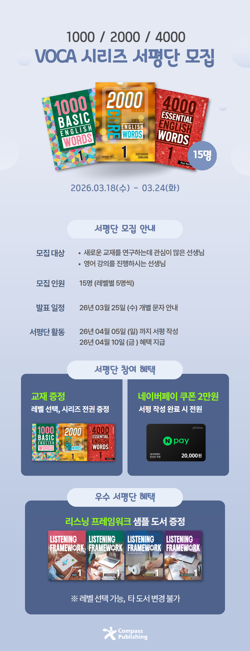 | 1000/2000/4000 VOCA시리즈 서평단 모집! (3월 24일 까지) |